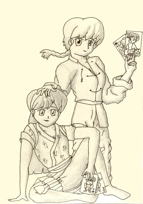 This was a pic I started after a Ranma 1/2 marathon with just Ranma-chan, then ended up adding Ukyo to help balance the