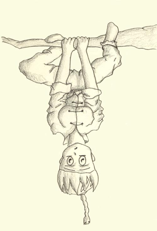 her the 'Tree Borne Kettle Girl'. I thought it would be a nice challenge to try an upside down Ranma-chan, so here she is.