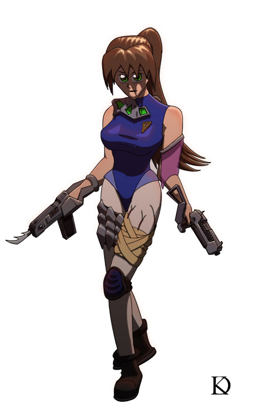 I've recently managed to get my hands on an artbook by Masamune Shirow and after seeing his work I just had to try a picture with that kind of feel. This actually didn't take as long to colour and shade as I originally thought it would, but as a whole it did take quite a while, and has kept me productive through a bout of apathetic depression and writer's block. I was aiming for a very disquieting look to her, and I think I've managed to get that. My second real photoshop effort.