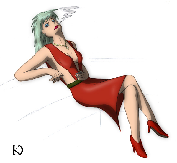 Yet another pic that started out as a biro sketch while incredibly bored. I have to say she came out remarkably well first time around and I was hard put to re-create the image even with a simple pencil trace job. Since I wanted to keep a little of that rough edged quality to her I decided to leave the line art as pencil rather than photoshopping it, which has made it look a lot less synthetic I feel, which I like. I also decided to take a few shortcuts with the shading, and lo and behold I really like the way it came out, especially the hair. It just goes to show that arduous work is not a great mother of invention! Anyway, I'm really happy with the way this merging of an almost cyber-punk sci-fi feel and some 1930s elegance came out.