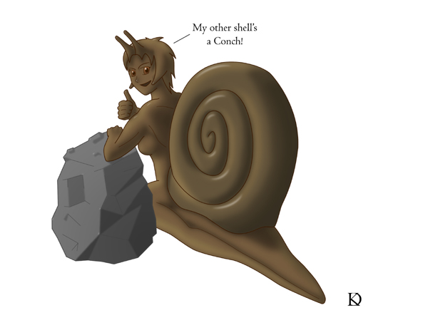 The second of these anthropomorphs from unexpectedly inspiring Canadian wildlife, finally done four month after completeing the original sketch. I'm very happy with the way she turned out, but I did end up abandoning any attempts to add more texture to her. Being happy with her as she is, since she is of-a-type with my Slug Girl, forced me to hold back because I could just end up doing too much and ruining the effect. Especially since texturing is not something I have experiance with, and I didn't want to ruin this one by starting here. Maybe next time, but I am very happy with the way she turned out.